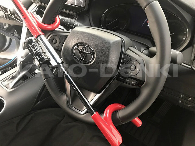 4桁の暗証コード(キー番号)を任意に登録できるダイヤルロック方式を採用したハンドルロックです。大型のSUV車、ミニバンはもちろん、トラック、バスなどの大型車など幅広い車種に対応しています。専用キーを持たずにご利用いただけるため、社有車や社用車など複数の社員での防犯・管理に最適です。