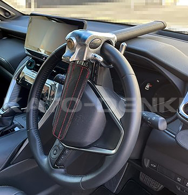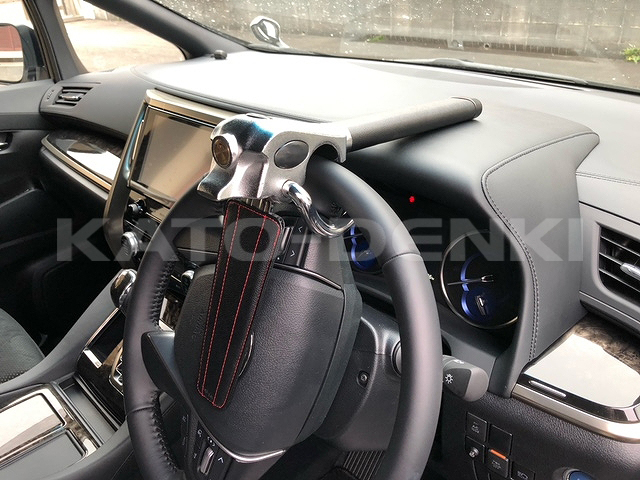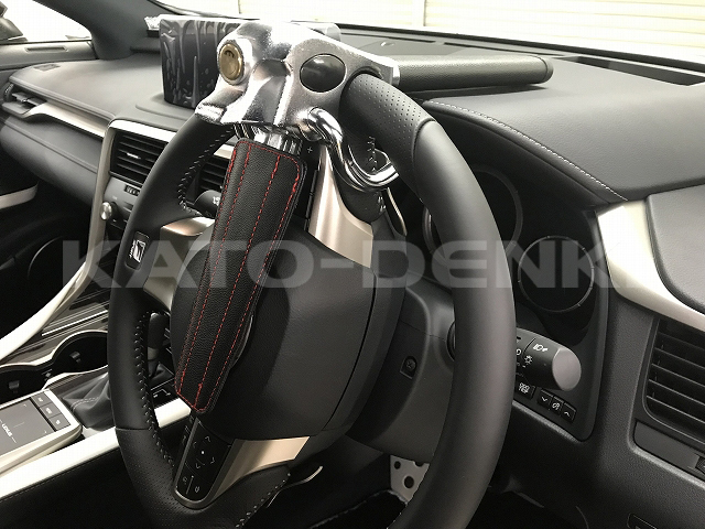 【注意】ステアリング位置の設定が高い状態の場合、ハンドルロックLH-5LBの持ち手側が浮く場合があります。ステアリングとの接触部に付属のクリーニングクロスを挟み込みご利用ください。